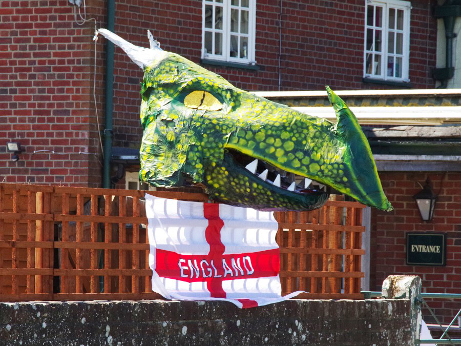 Children’s Prize: the dragon peering over the wall of the Horse and Harrow pub.